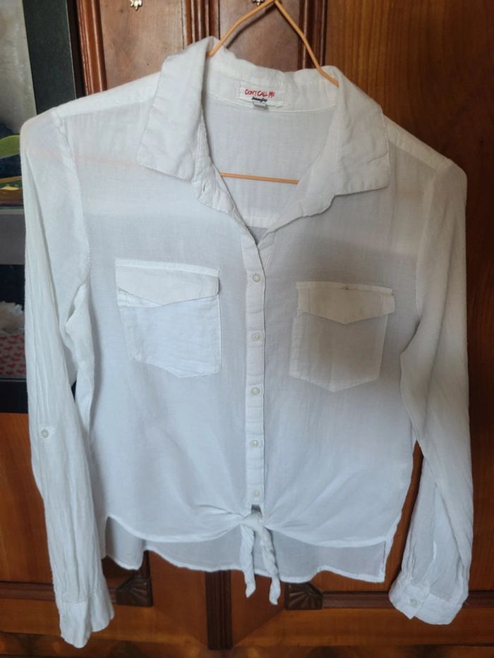 Chemise blanche nouée sur le devant, avec poches