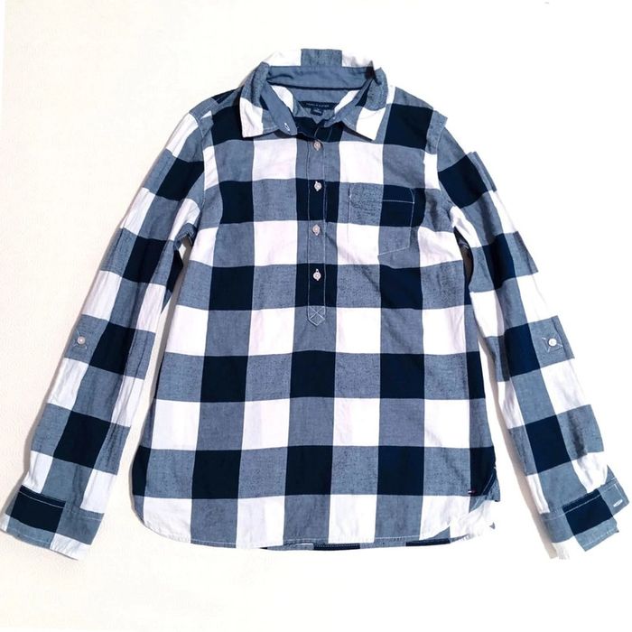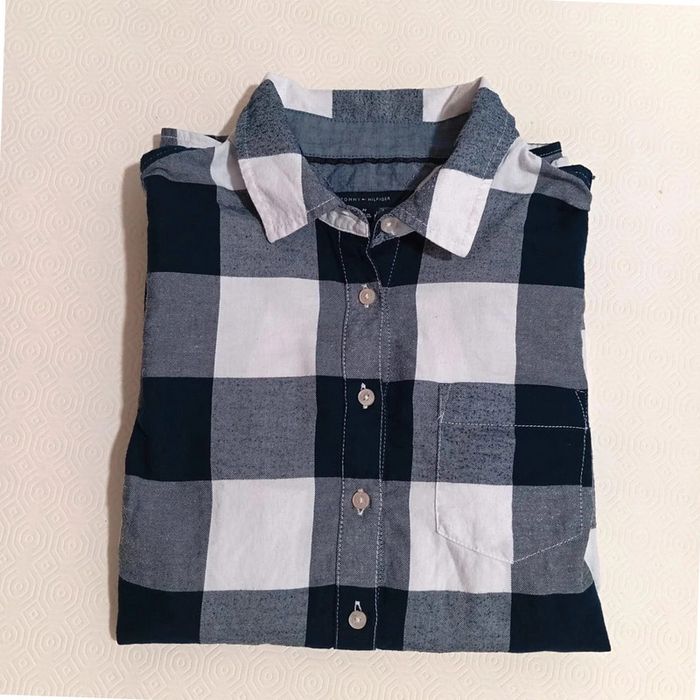 Chemise A Carreaux et Manches Longues Pour Femme Tommy Hilfiger Taille M 100% Coton A carreaux bleu marine En très bon état