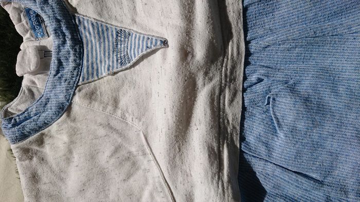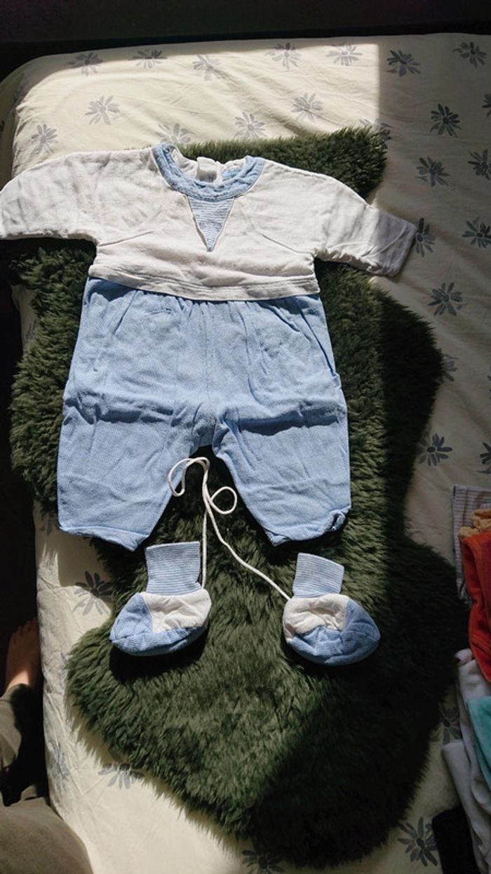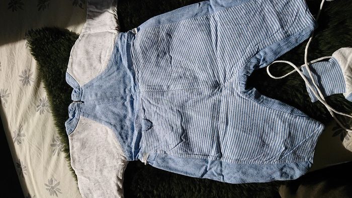 Petite combinaison bleu et blanche avec chaussons marque Marèse 6 à 9 mois