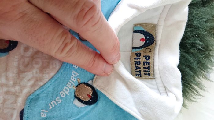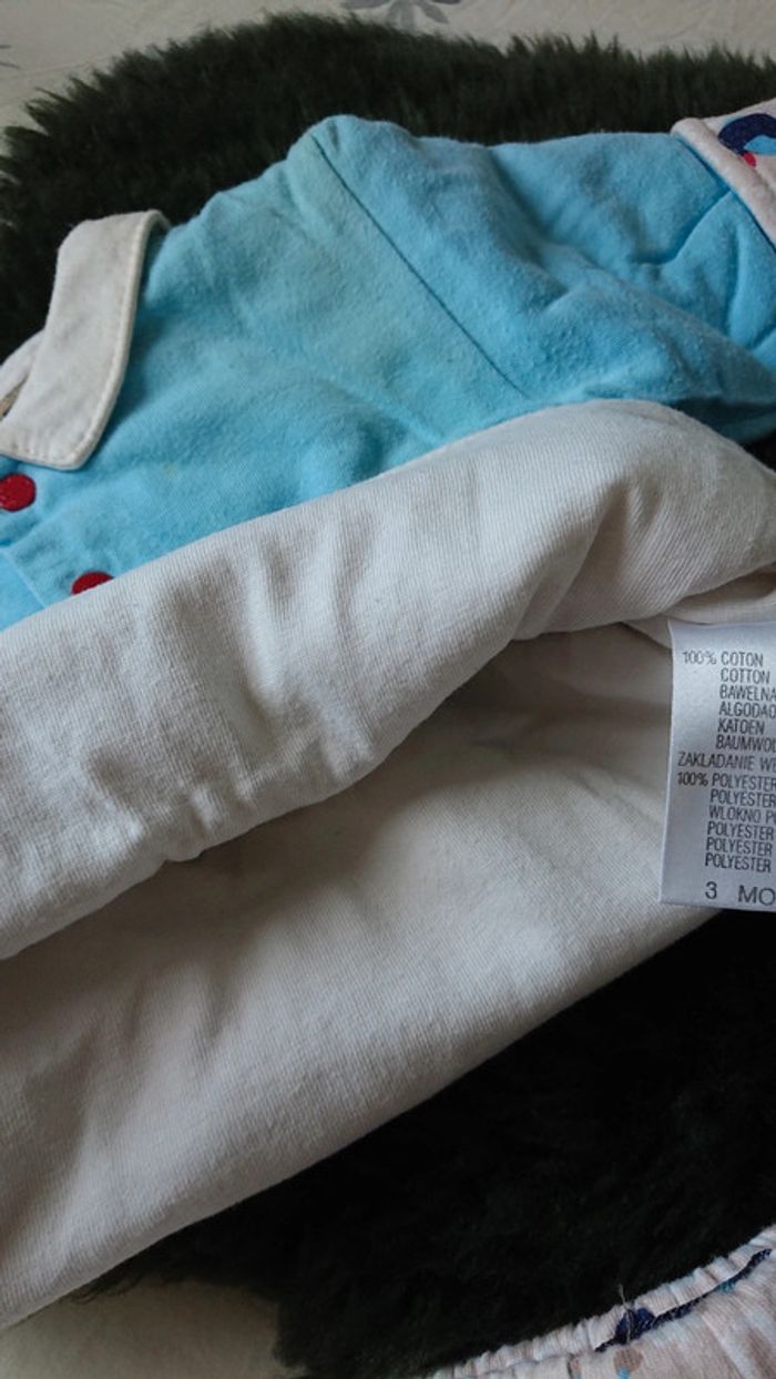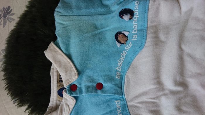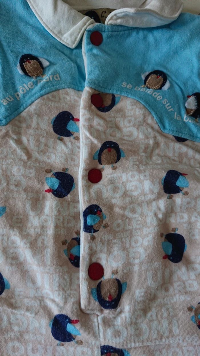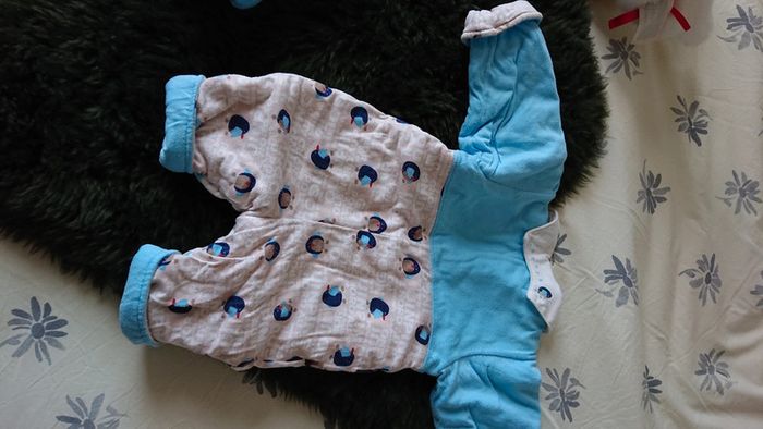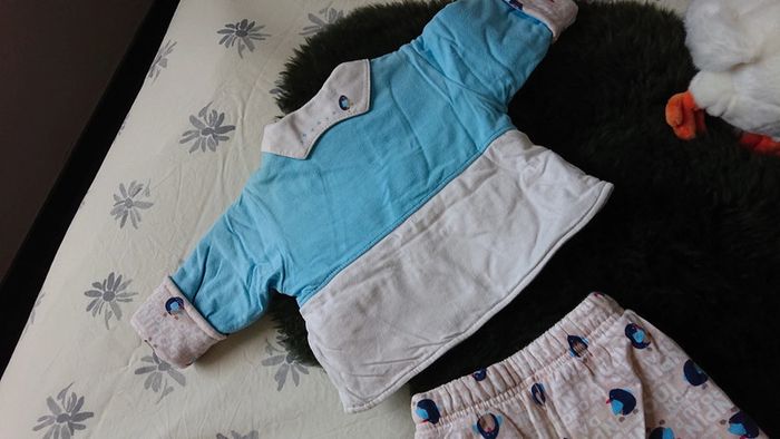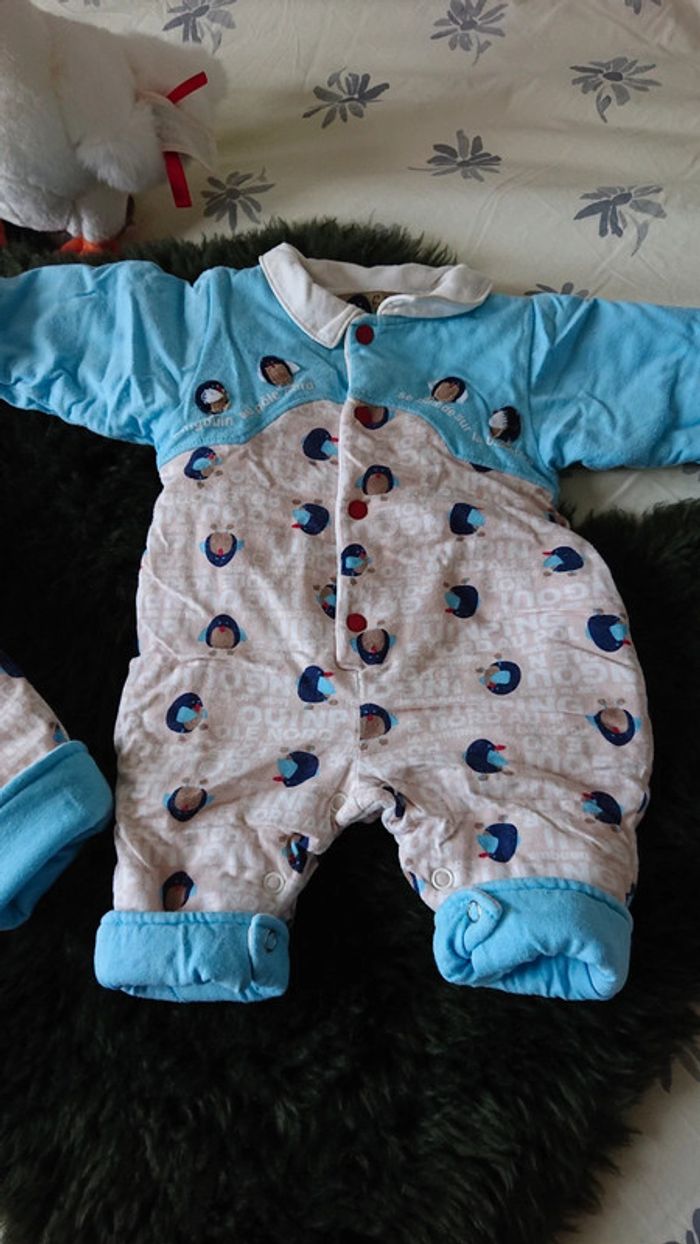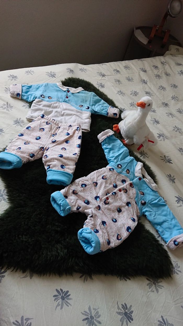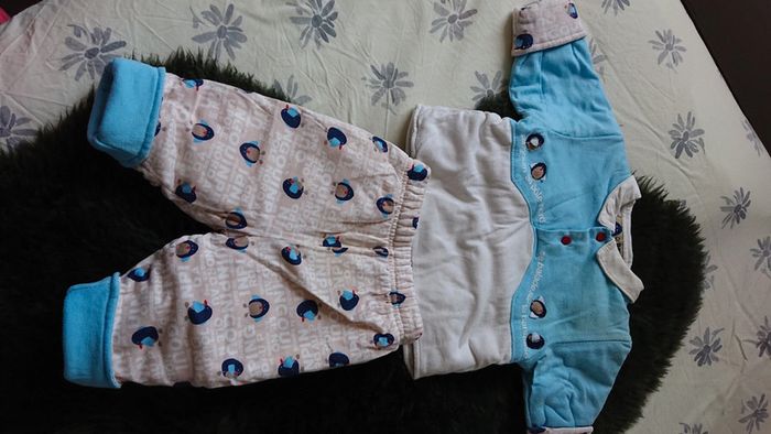 Ensemble combinaison puis ensemble au plus pantalon de la marque petit pirate 100 % coton molletonné ouverture de la combinaison complète jusqu'à l'entrejambe taille 1 mois