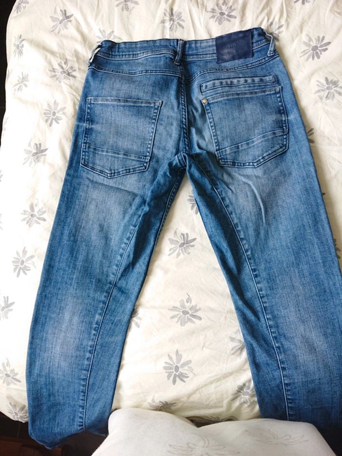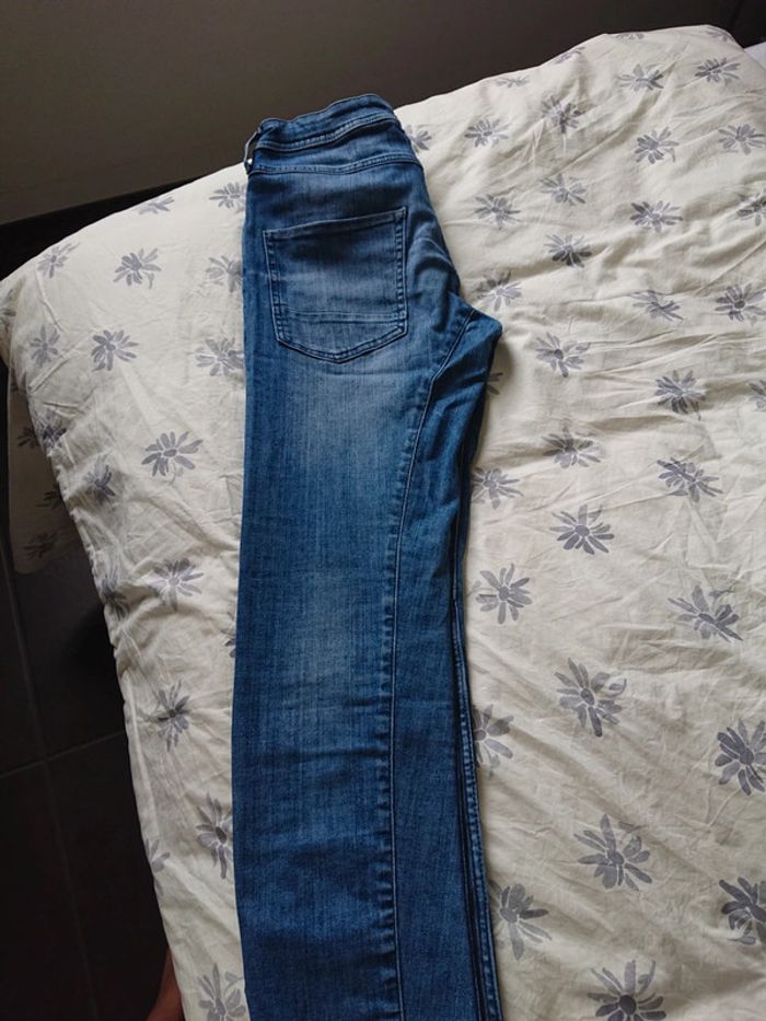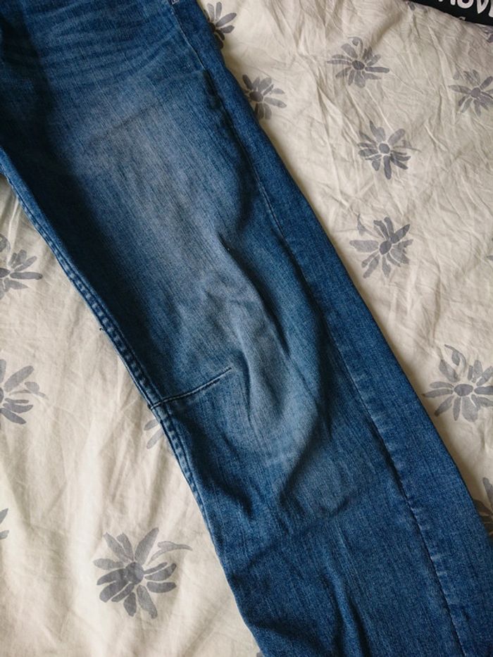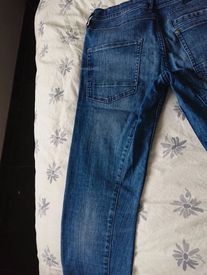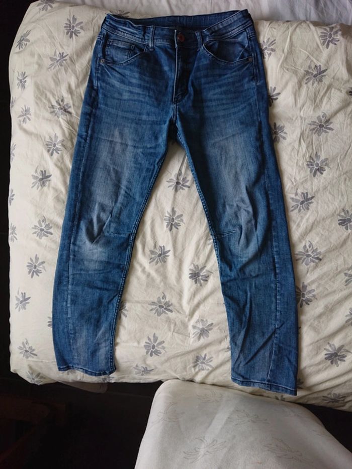 Jeans 3/4 s'arrêtant au-dessus de la cheville entre regular et Slim taille intermédiaire à haute Couture originale à l'arrière et petite pince au niveau du genou