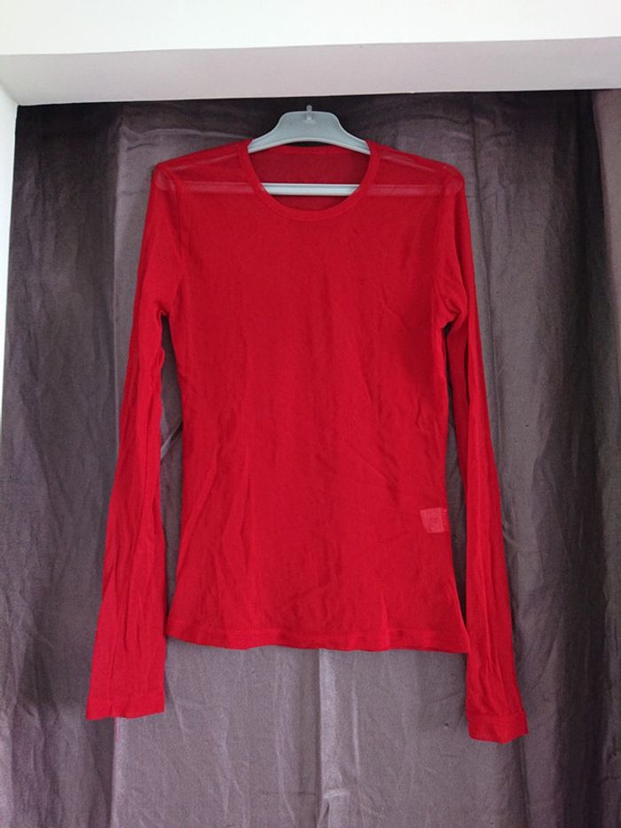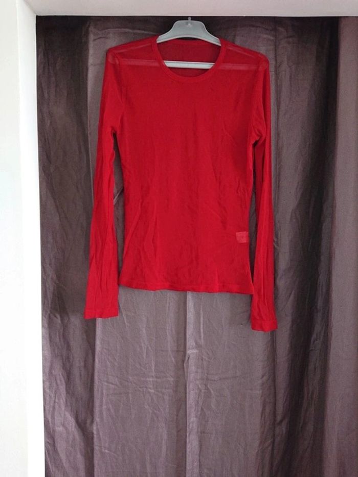 Sous-pull manches longues transparent pour créer des superposition marque la petite française Paris de couleur rouge il est idéal pour créer un pep's sur les tenues plus classiques Étiquette de marque enlevée