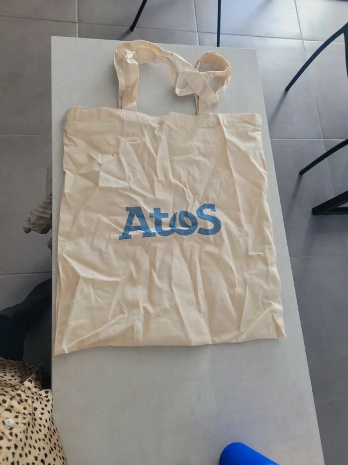 Bonjour Je vends un sac cabas en tissu Atos, jamais utilisé petit défaut de fabrication voir dernière photo.