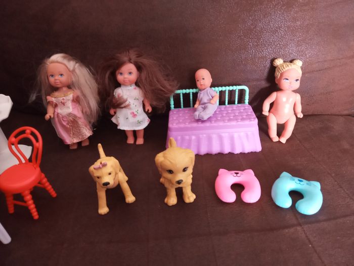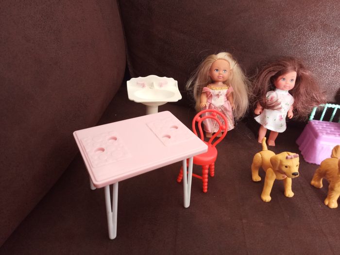 Lot d'Accessoires, Enfants, Chiens et Mobilier pour poupée Barbie ou autres En bon état, vendu comme sur les photos