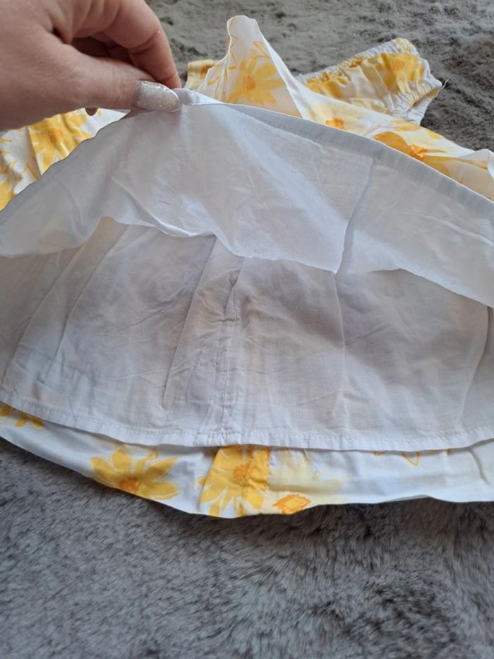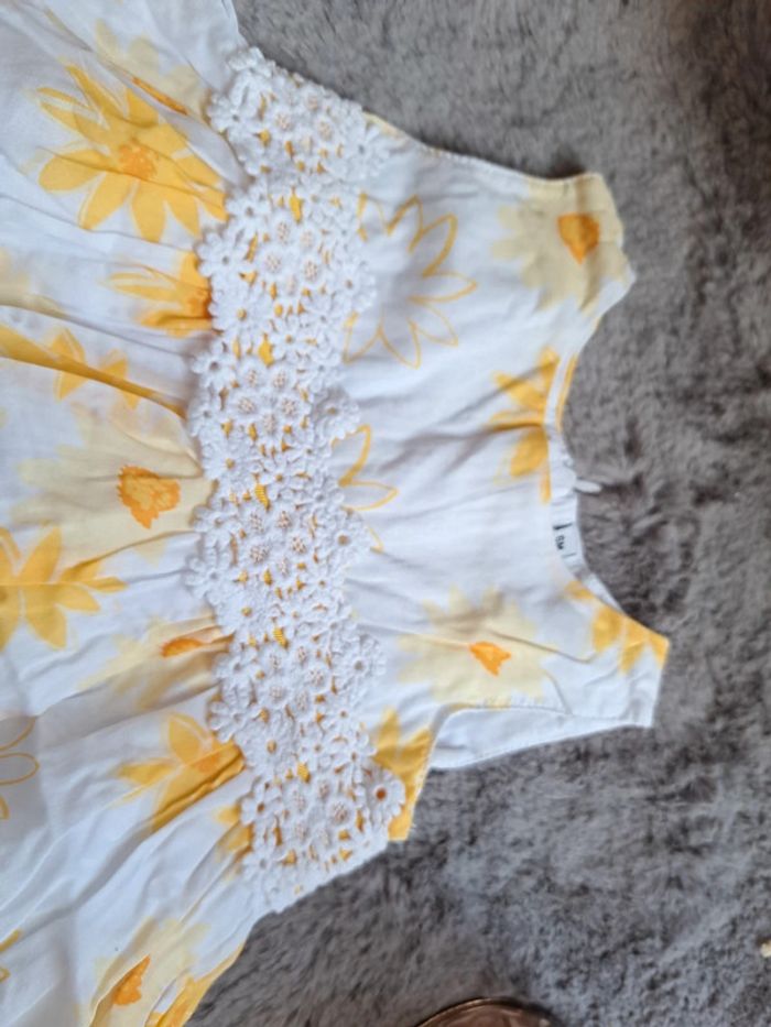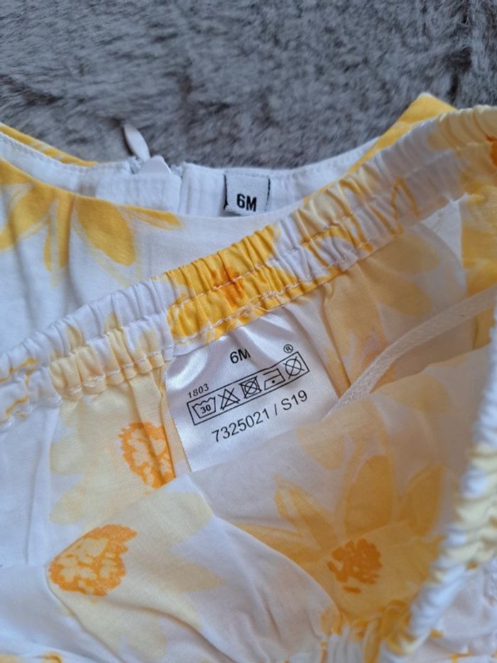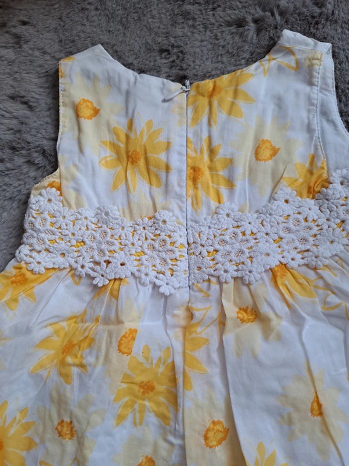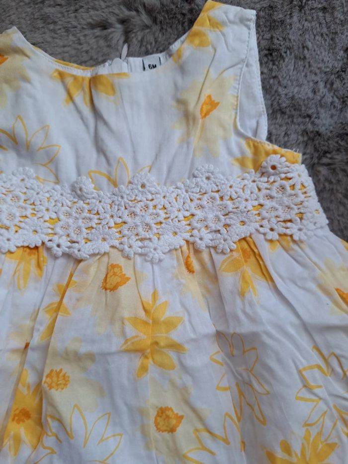 #robe #bebe #fille #taille6mois #bretelleslarges #blanche #motif #fleurs #jaune #doublée Avec #bloomer #excellentétat