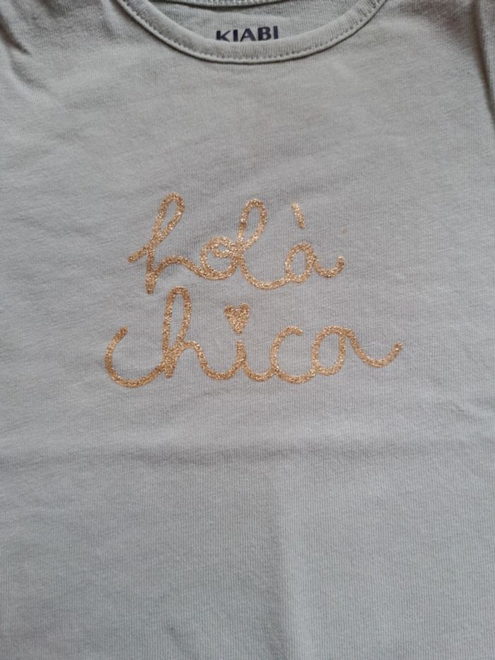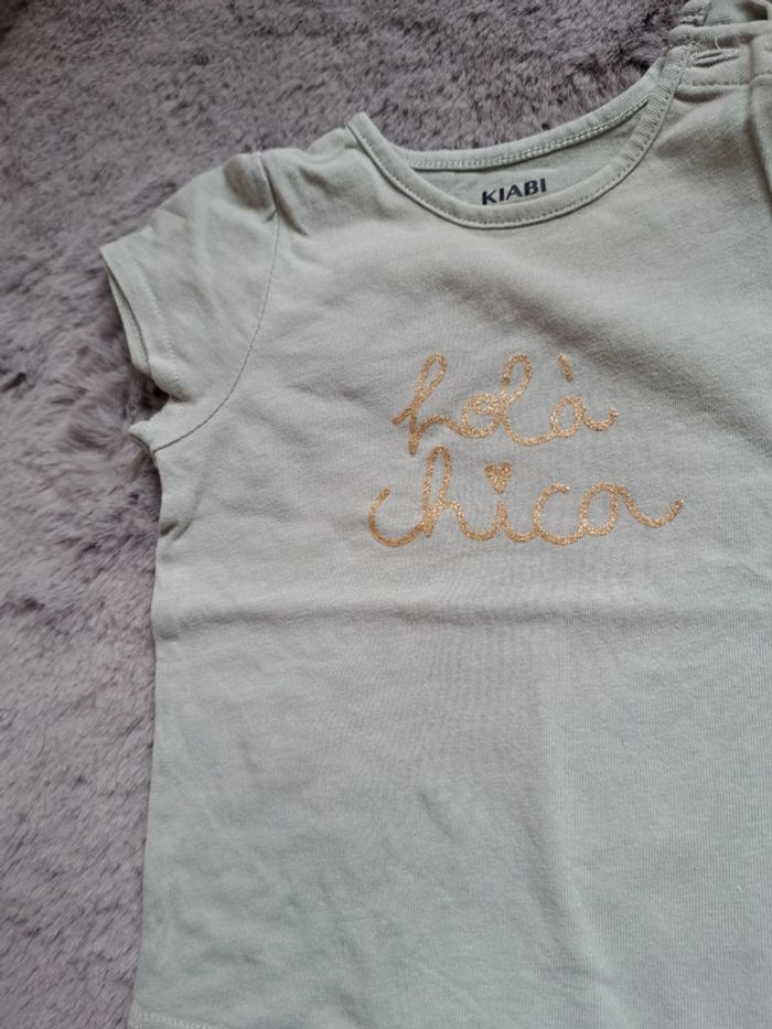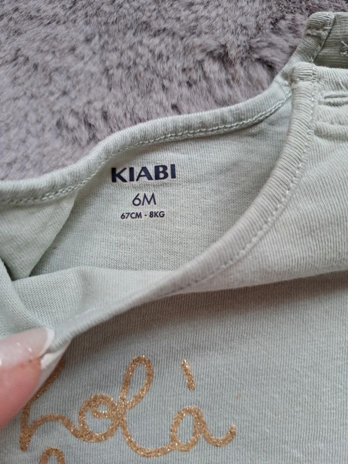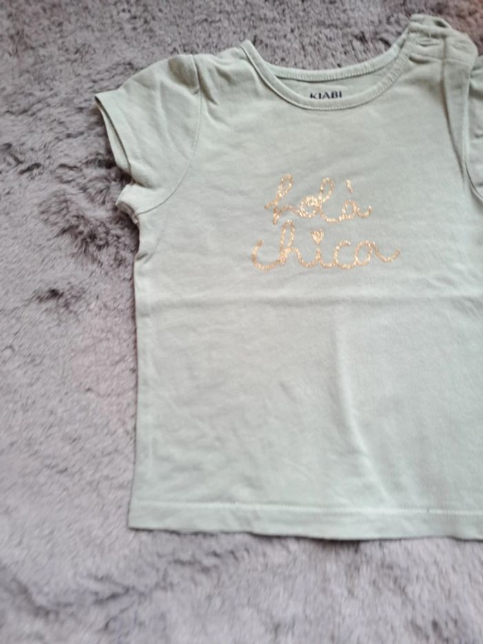 #teeshirt #bebe #fille #manchescourtes #vert #vertamande avec #inscription #paillette #commeneuf #kiabi #taille6mois