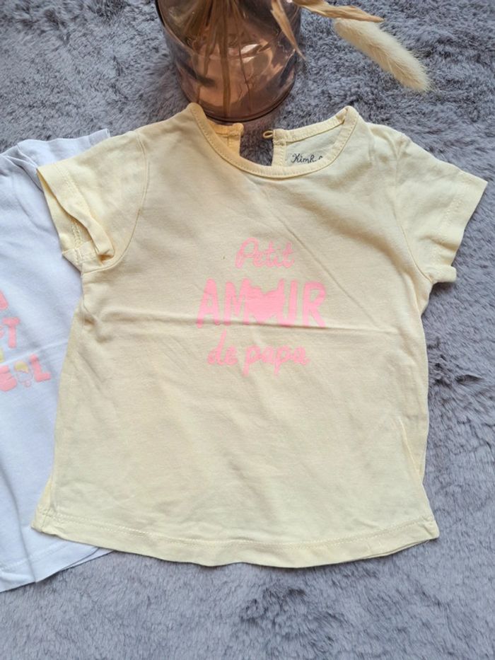 #lot de 2 #teeshirt #bebe #fille #manchescourtes 1 #blanc 1 #jaune avec #inscription #commeneuf #kimbaloo #taille9mois