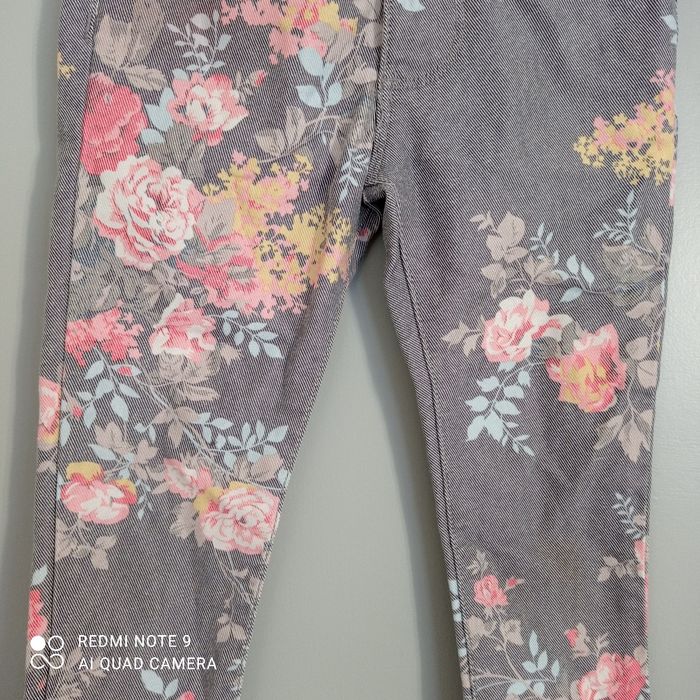 Pantalon skinny stretch gris à fleurs 4ans