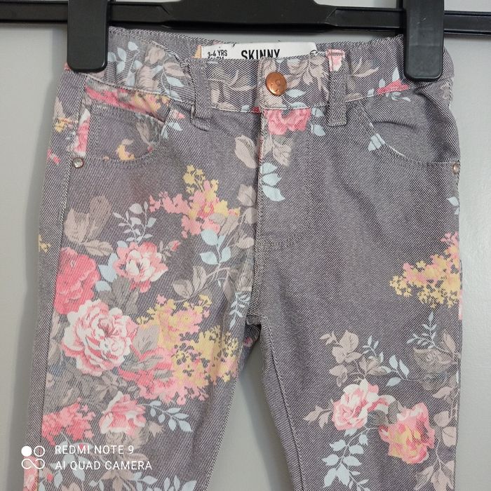 Pantalon skinny stretch gris à fleurs 4ans - photo numéro 1