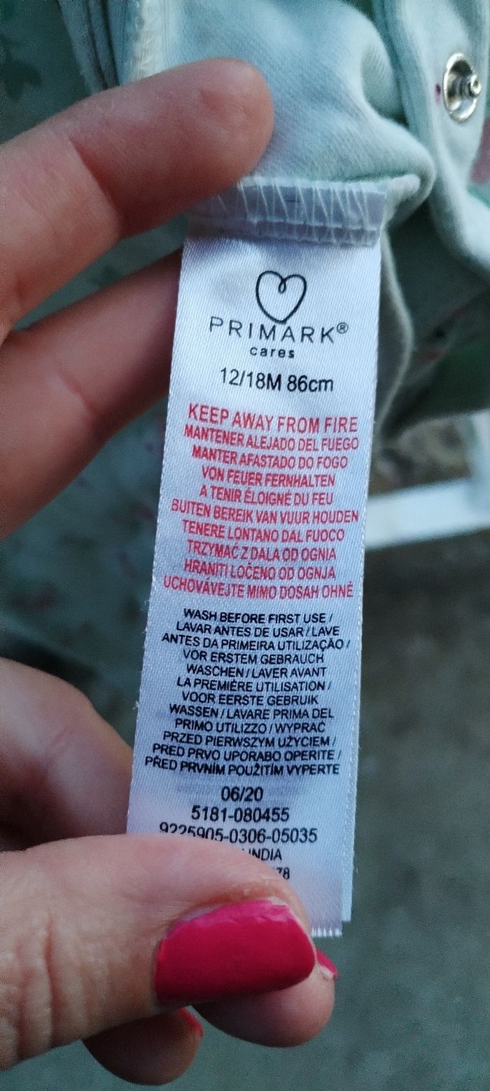 Pyjama bleu une pièce pour fille. Marque Primark. Taille 12-18 mois. Comme neuf. Que mondial relais ou Relais Colis.