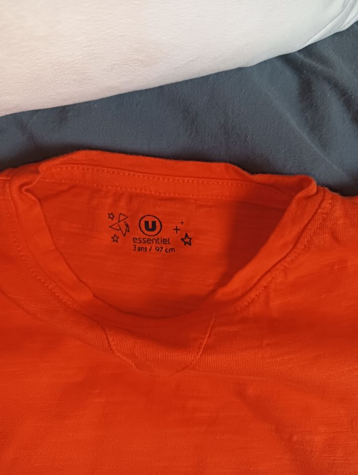 🌀 T-shirt garçon manches courtes 3 ans . Marque U Essentiel En très bon état. 🔸Col rond 🔸100 % coton 🔺 La couleur orange est un peu moins vive que sur les photos.