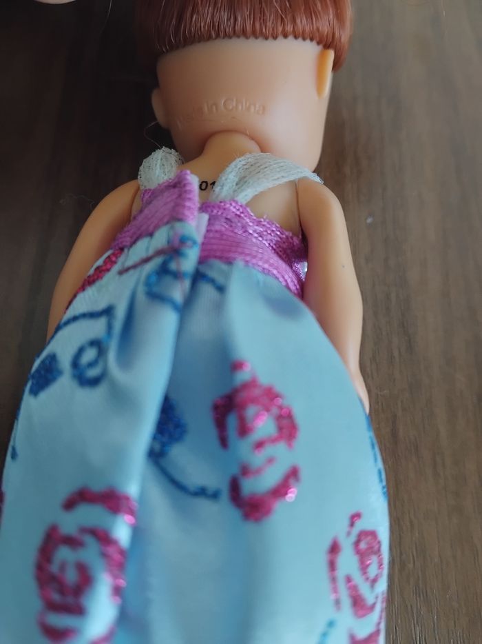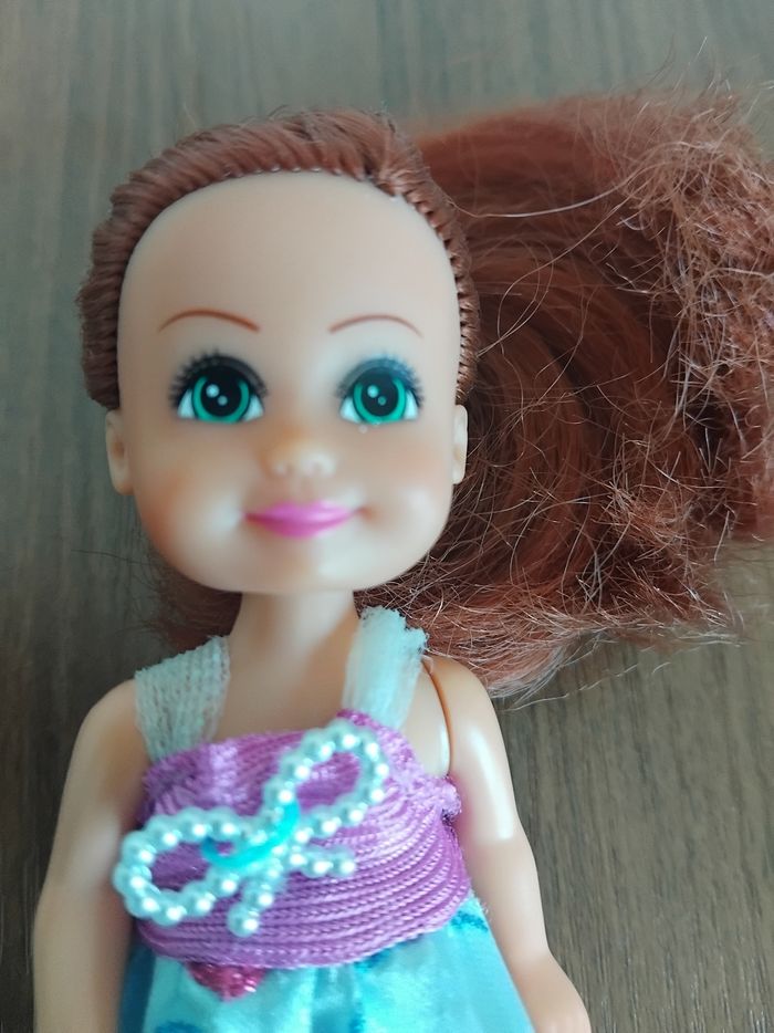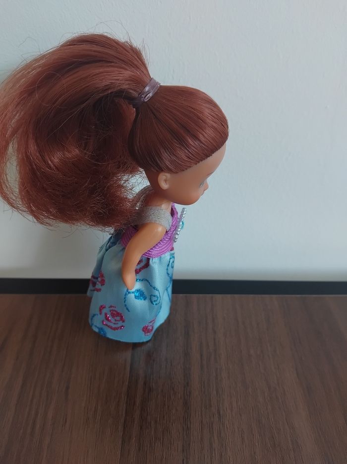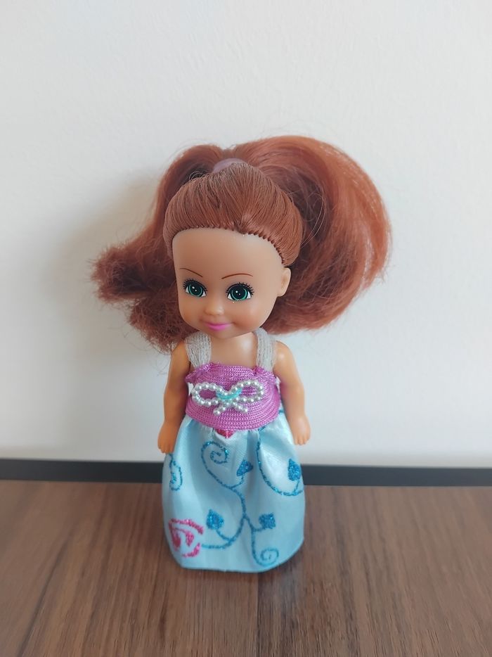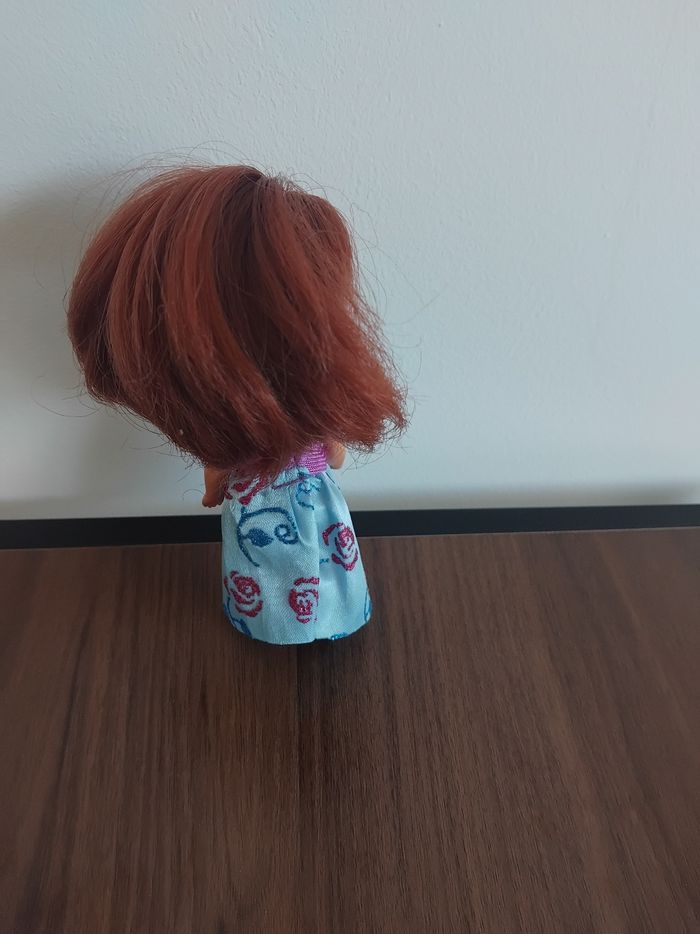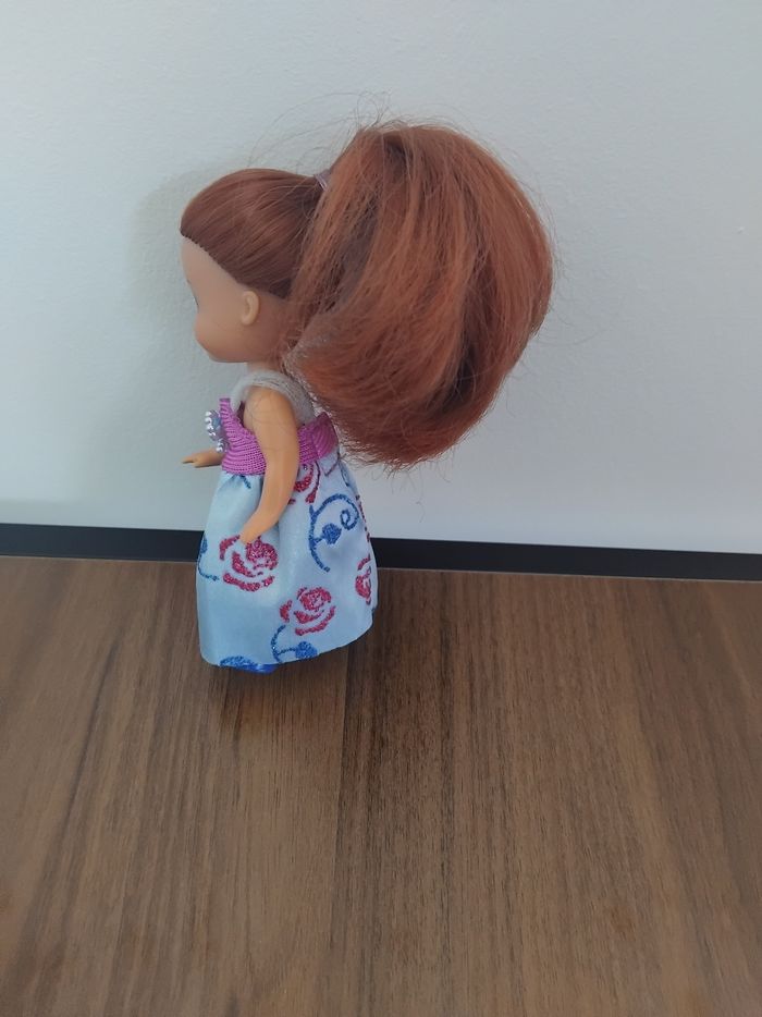 Petite poupée aux cheveux roux et aux yeux bleus. Poupée style Chelsea de 10 cm environ. La robe peut se retirer, les chaussures non elles sont peintes au pieds. Pas de marque. #poupéenade3033 #joueteducatifnade3033 #jouetenfantnade3033