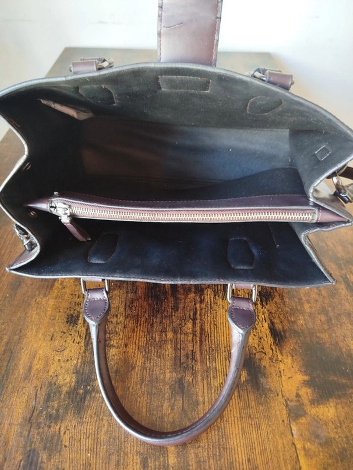 Sac en polyuréthane...très bon état général... quelques traces minimes d usure d usage .. couleur violine marron 34 cm X 27 cm