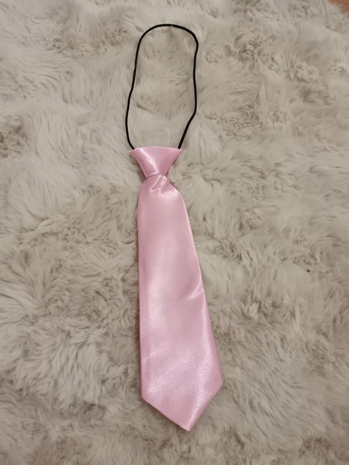 Cravate rose claire à cordon (pas besoin de nouer mais juste d'enfiler) de 26cm de long. Idéal pour un déguisement, une tenue d'enfant ou pour ajouter du peps à une tenue Neuve