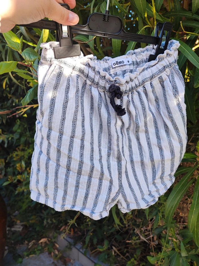 A vendre joli short fluide avec rayures esprit bohème Taille 9 ans Petit noeud pour resserrer a la taille Bon état idéal pour l'été #gemo #short #fille