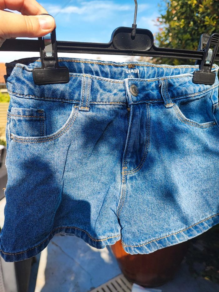 Short en jean couleur bleu jean Idéal pour cet été Taille réglable Très bon état Taille 10 ans de chez Kiabi #kiabi #shortenjean #fille