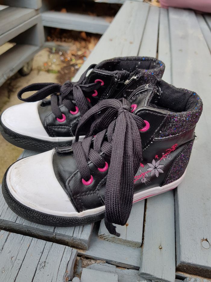 A vendre baskets montantes pour fille. Taille 26, bien portée mais largement portable encore ! Avec fermeture sur le.cote pour un enfillage simple