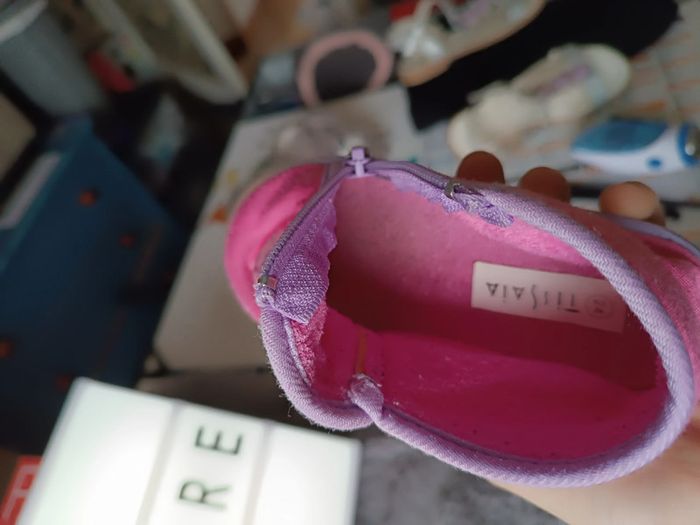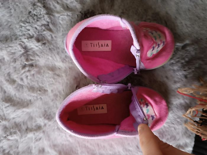 Petite paire de chaussons rose avec son coeur devant Fermeture éclair sur les côtés Bon état général voir les photos Mes autres articles : #latetelledu29chaussures #chausson24 #pointure24fille #24chausson
