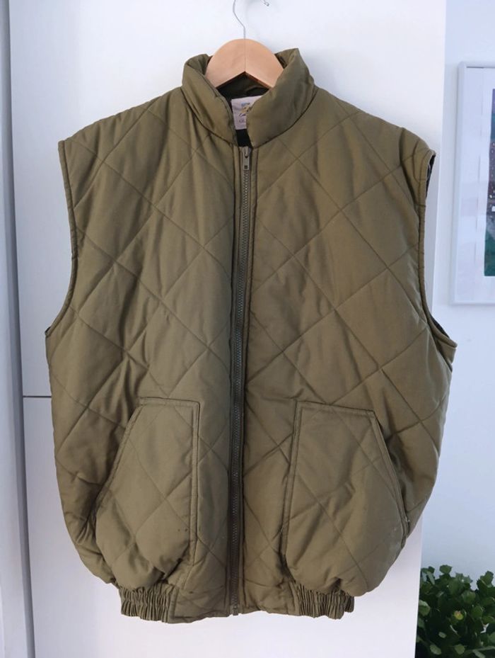 Veste matelassée sans manches Kaki, Gilet Cenvennes taille L Élastique en bas. Bien rembourré, en parfait état. Mesures : Épaules 51cm Aisselles 64cm Longueur 70cm