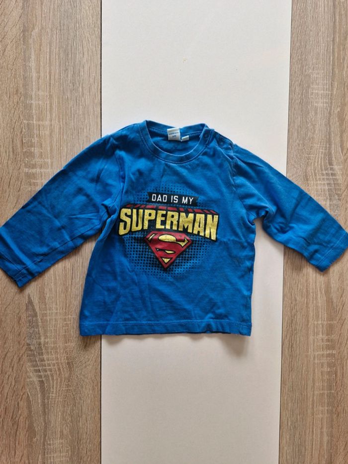 #melany71_cuisine Sous pull gris en bas à gauche de la marque Kiabi sous pull bleu Superman sous pull à rayures bleu et blanche bout'chou et le dernier pull à colle et marque textbaby les quatre sont en très bon état