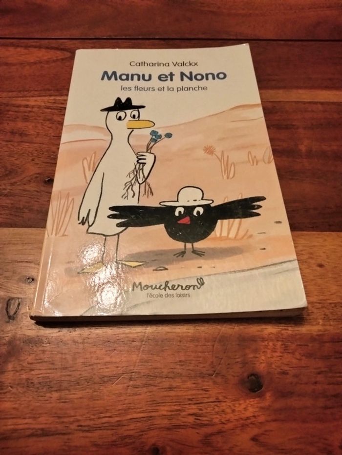 Livre intitulé Manu et Nono les fleurs et la planche moucheron l'école des loisirs