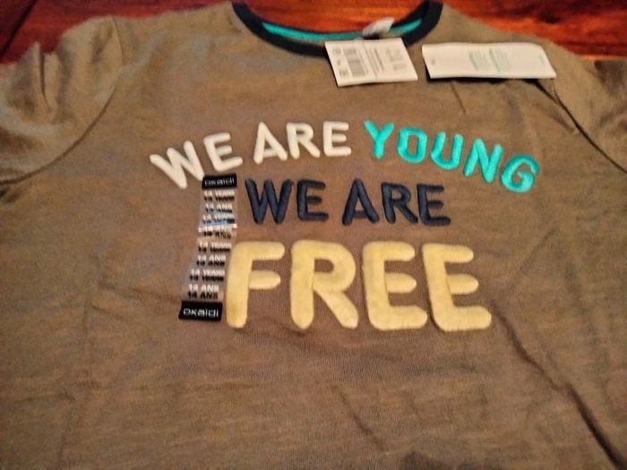 T-shirt manches courtes uni kaki inscription devant 14 ans Okaïdi - photo numéro 1