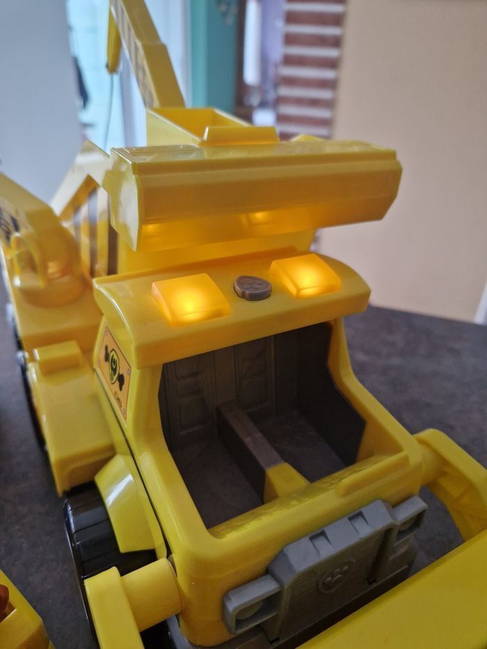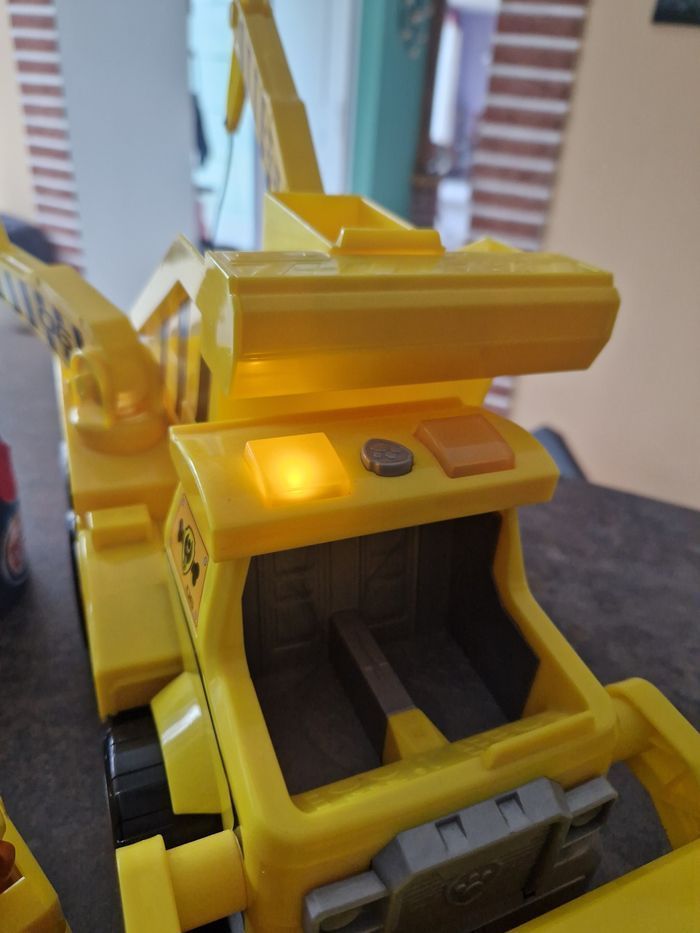 Bonjour je vend ce camion tractopelle ruben de la pat patrouille Avec 2 petits engins qu il transportent La figurine Son et lumière En très bon état