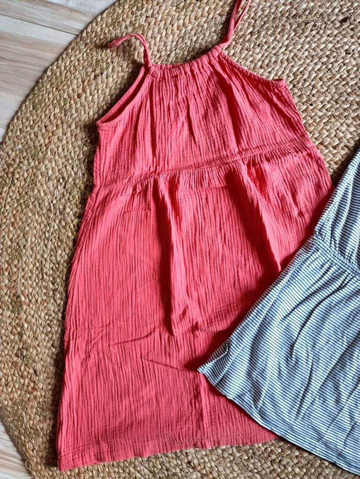 Lot de 2 jolies robes Okaïdi avec motif sequins changeant et Kiabi en gaze coton