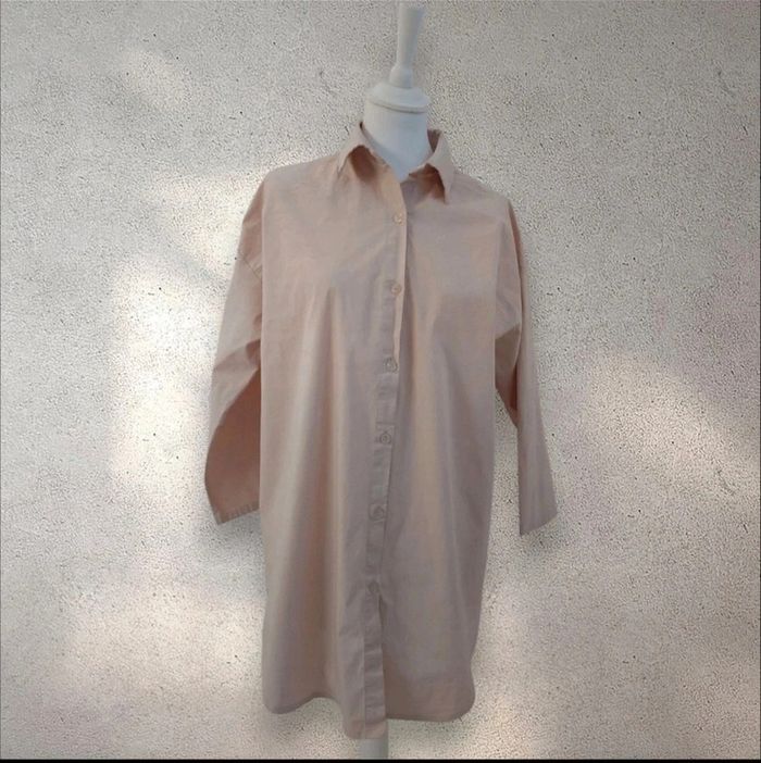 Chemise longue manches longues oversize taille unique beige - photo numéro 1