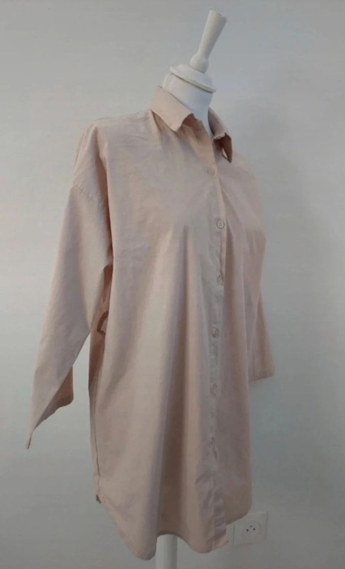 Chemise longue manches longues oversize taille unique beige - photo numéro 5