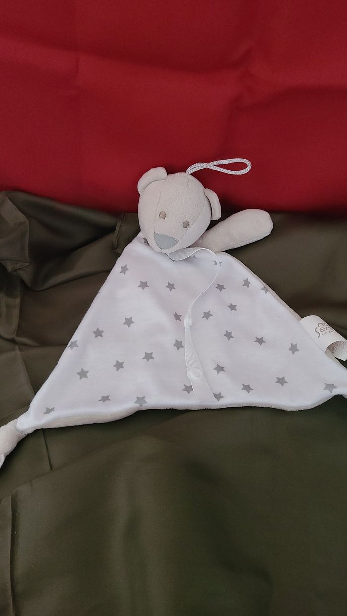 doudou plat ours gris etoile blanc bebiou attache tetine nature et senteurs - photo numéro 1