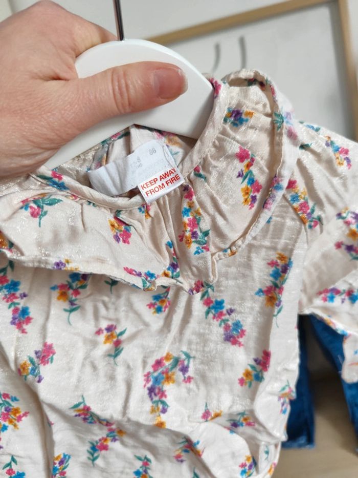 Ensemble jeans large blouse fleurie Zara 12/18mois 86cm - photo numéro 3