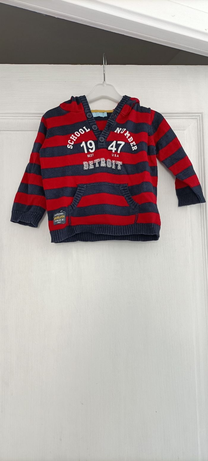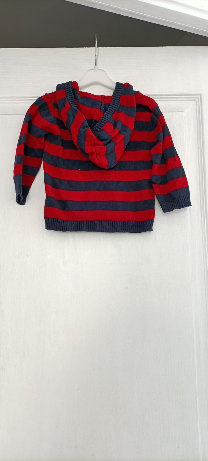 Pull à capuche garçon, rayé bleu marine et rouge, taille 6 mois. 1€