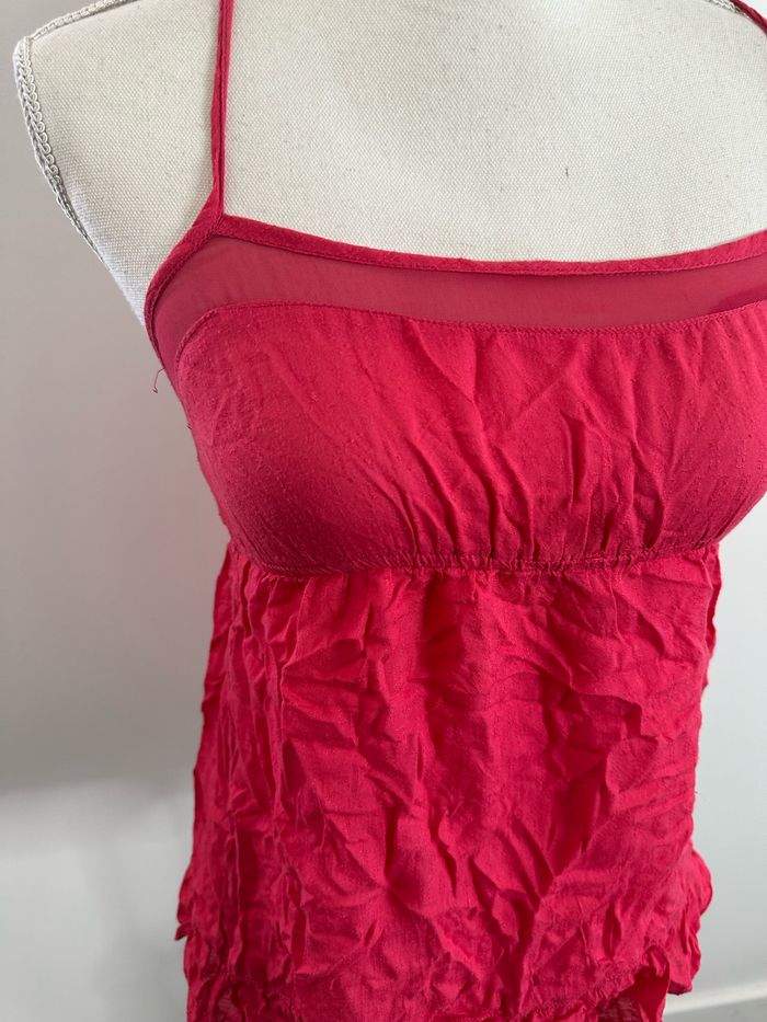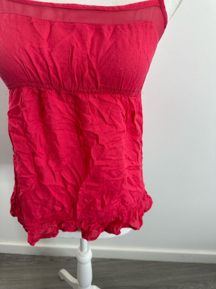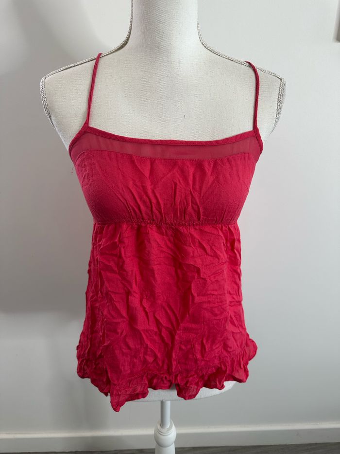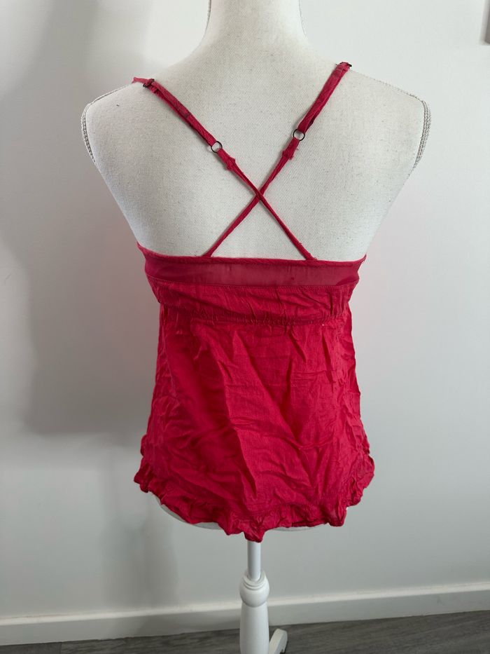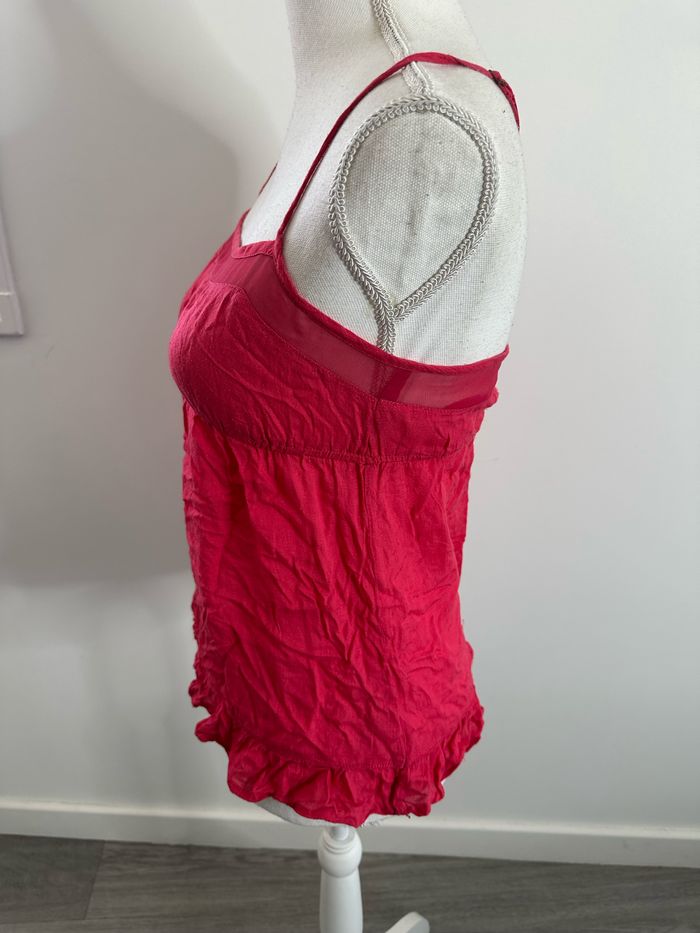 Débardeur - Excellent état - Taille 36 équivalent S - Couleur rose fuchsia rose bonbon - Mesh, résille au niveau du décolleté - Fines bretelles réglables croisées - Style Y2K - Pas d’étiquette de taille ni de matière