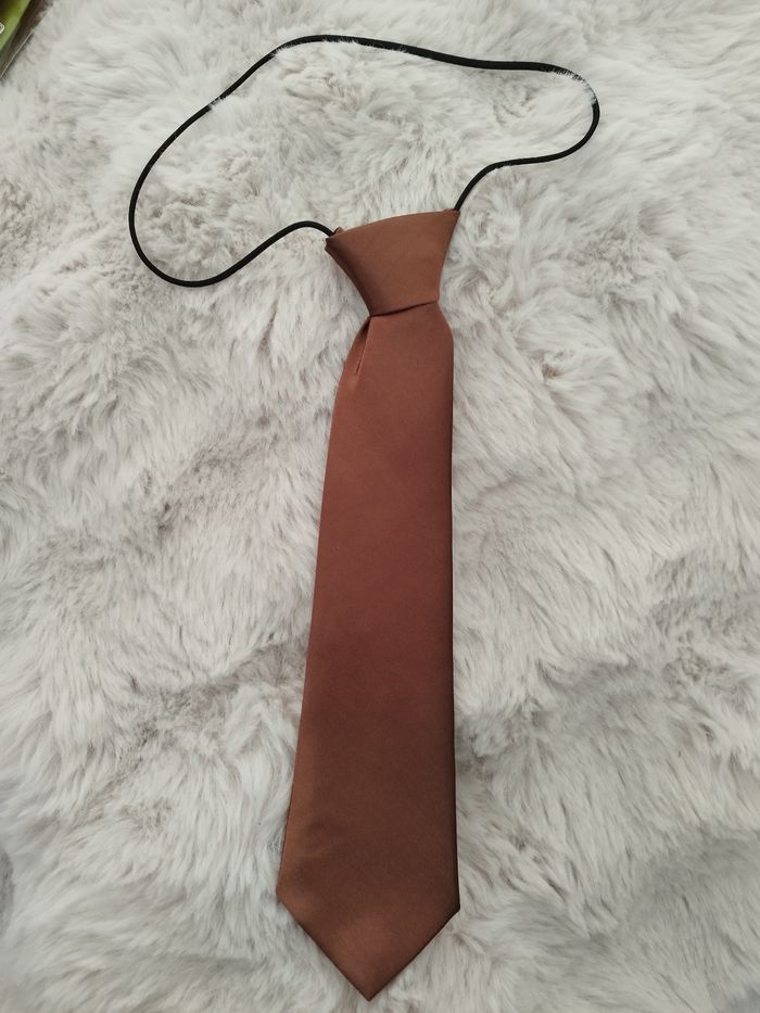 Cravate marron à cordon (pas besoin de nouer mais juste d'enfiler) de 26cm de long. Idéal pour un déguisement, une tenue d'enfant ou pour ajouter du peps à une tenue Neuve
