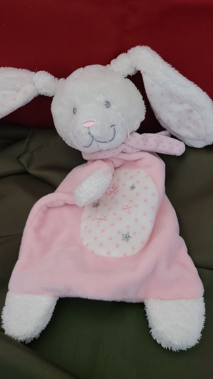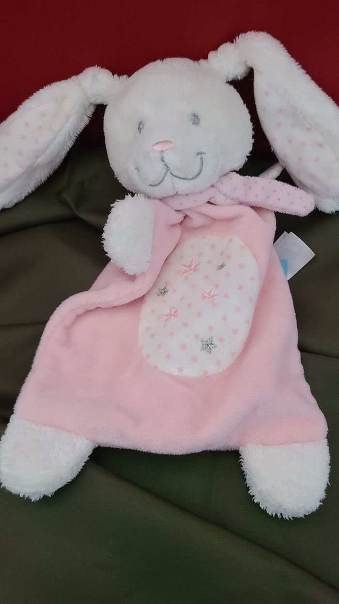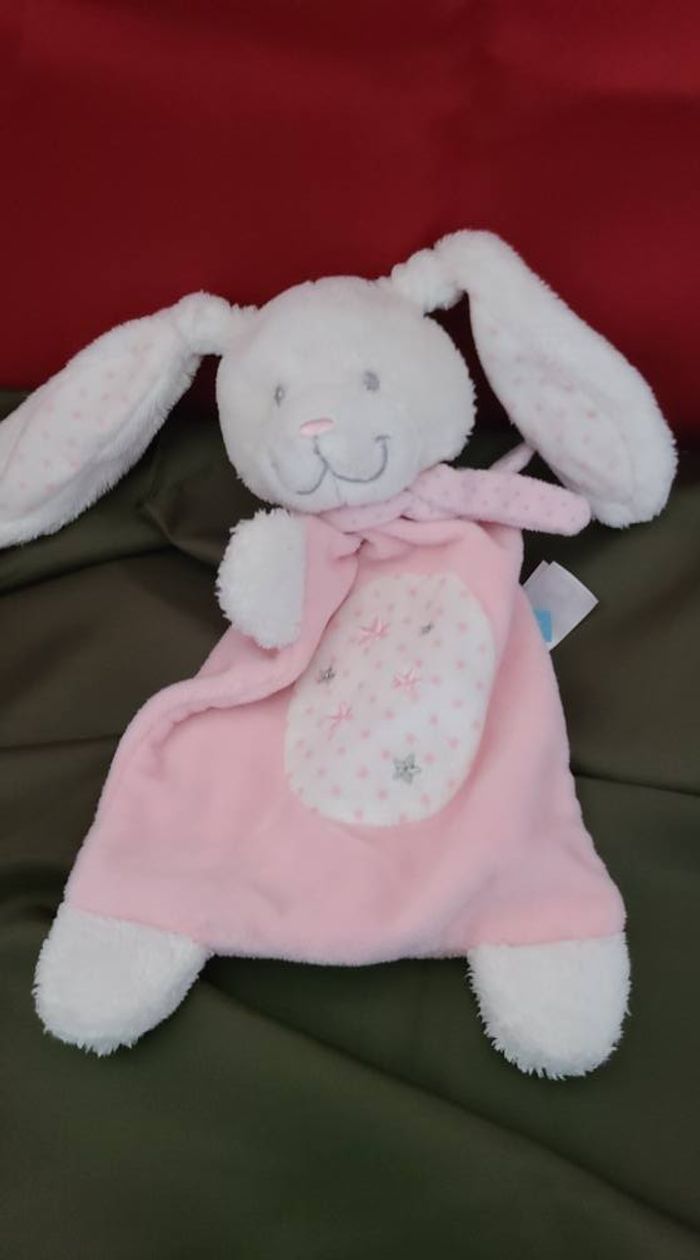 Doudou plat lapin rose blanc Etoiles TEX Baby Carrefour 94
