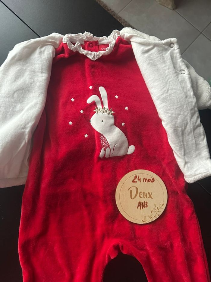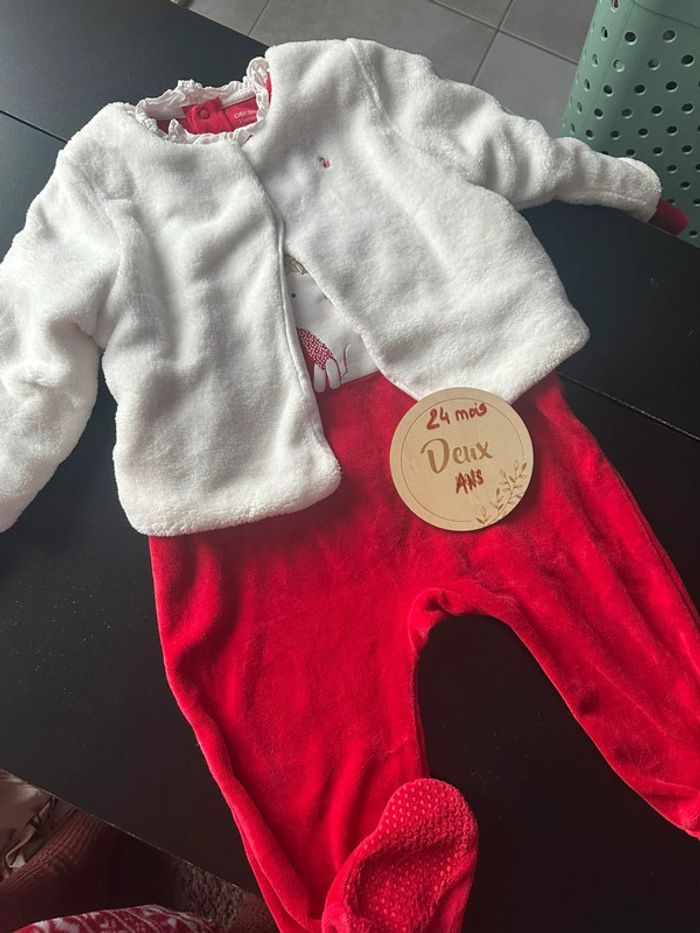 Okaibi Veste fausse fourrure blanche et pyjama une pièce velours rouge #theaellie24mois
