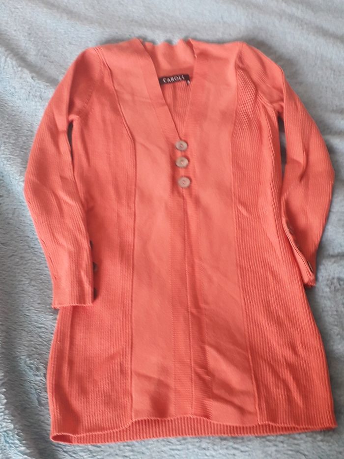 Je vends un pull de la marque Caroll, en excellent état, de couleur corail Taille 34