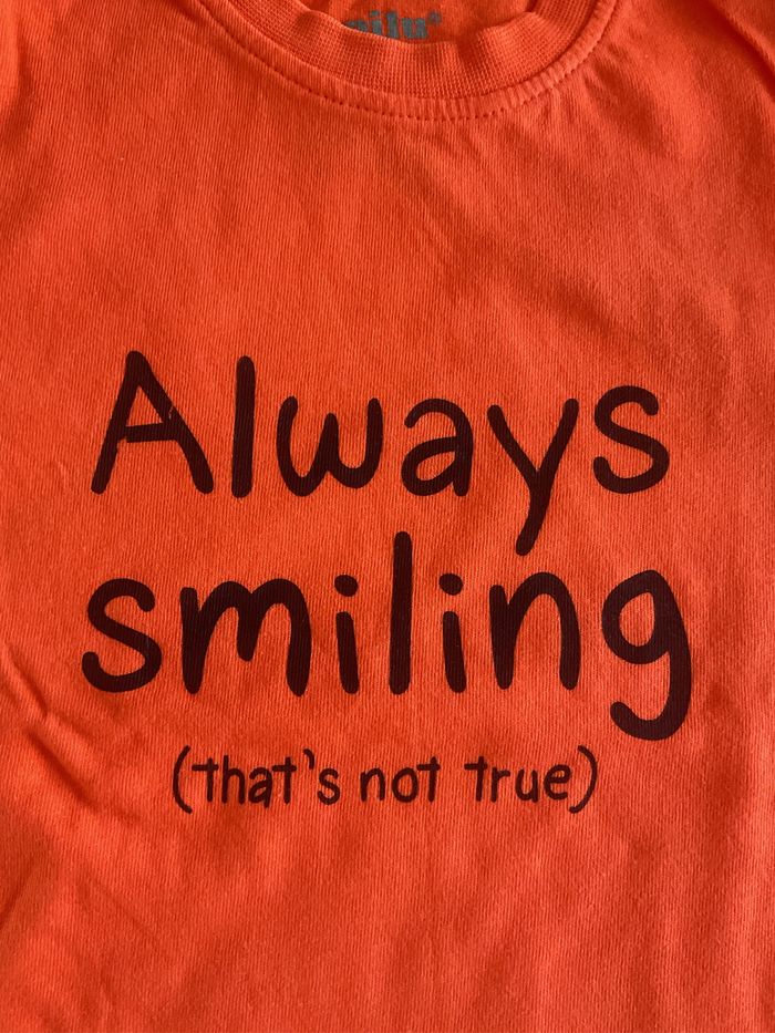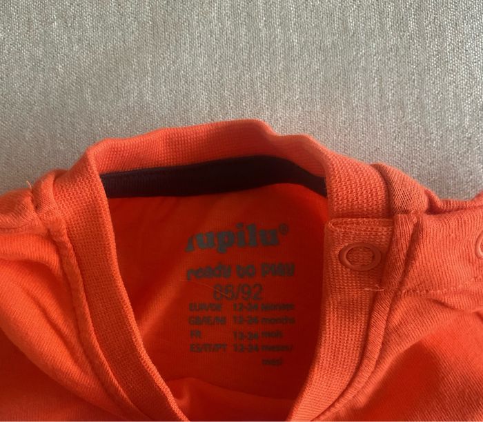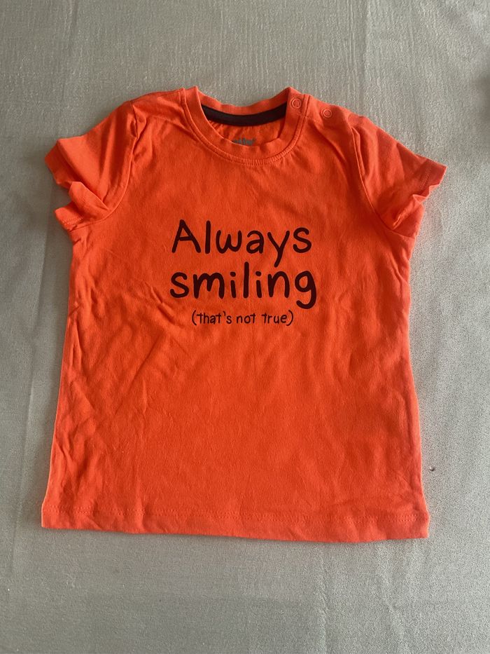 👕 T-shirt manches courtes garçon 👕 T-shirt manches courtes pour petit garçon. Ouverture latérale de l’encolure à gauche par pressions. Inscription « always smiling (that’s not true) ». ➡️ Taille: 12-24 mois - 86-92 cms ➡️ Marque: lupilu ➡️ Coloris: Orange, Noir ➡️ Composition: 100% coton Je propose des envois par Mondial Relay ou Relais Colis N’hésitez pas à me contacter pour d’éventuels renseignements 🙂