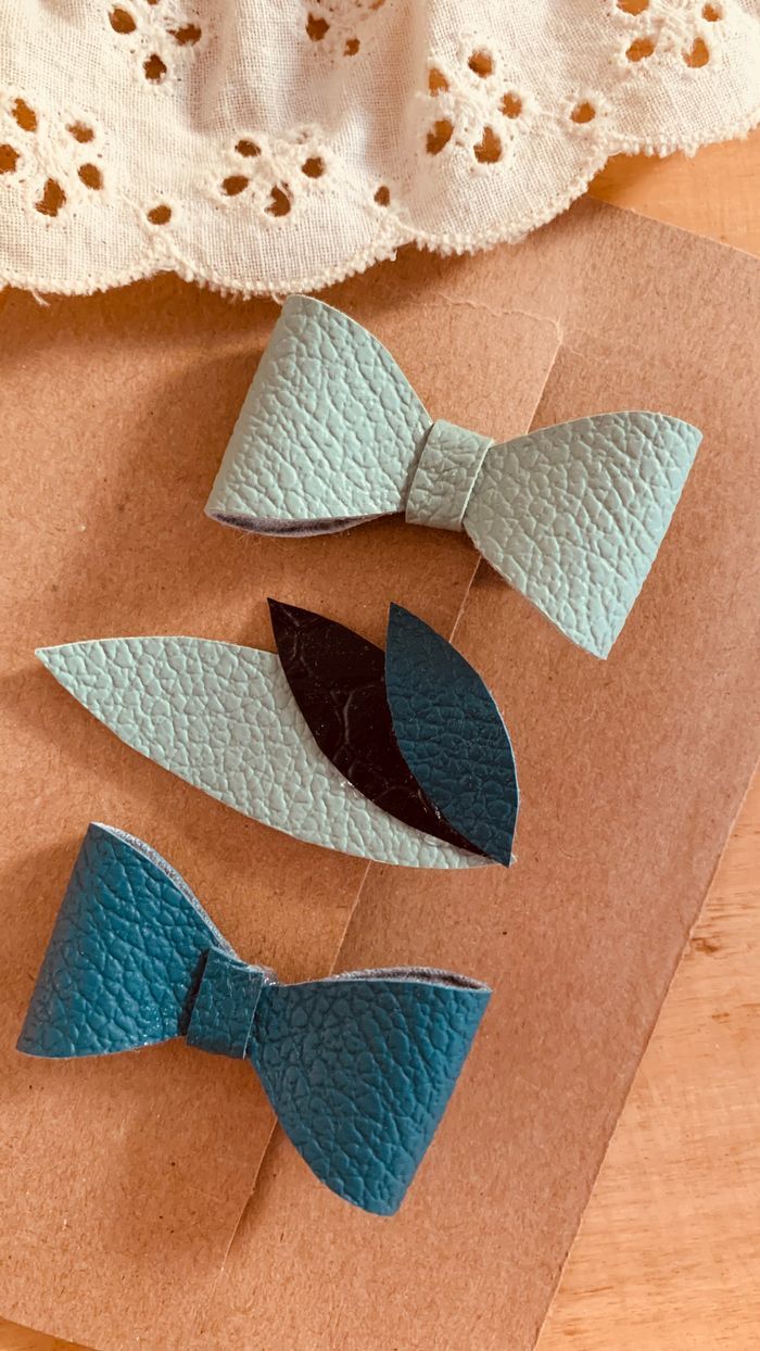 Lot de 3 barrettes bleu et vert d’eau Créations faits mains Plusieurs modèles et coloris disponibles sur commande Neuves jamais portées Pinces crocodiles