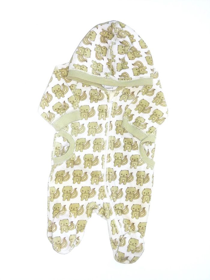 Autres vêtements 1 mois visibles en tapant: #karinelillefille1mois #karinelillegarcon1mois Pyjama d'occasion en excellent état de marque HM, en velours tout doux, en coton et polyester, imprimé couleur eucalyptus sur fond blanc orné d'une capuche, fermeture zippée à l'avant. Dressing visible à côté de montpellier