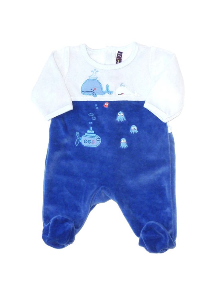 Pour voir mes annonces dans cette taille, tapez: #karinelillegarcon1mois Faites des lots pour déclencher des remises ! Pyjama velours bicolore, bleu et bleu pastel, en excellent état de marque SERGENT MAJOR, orné de petites broderies.