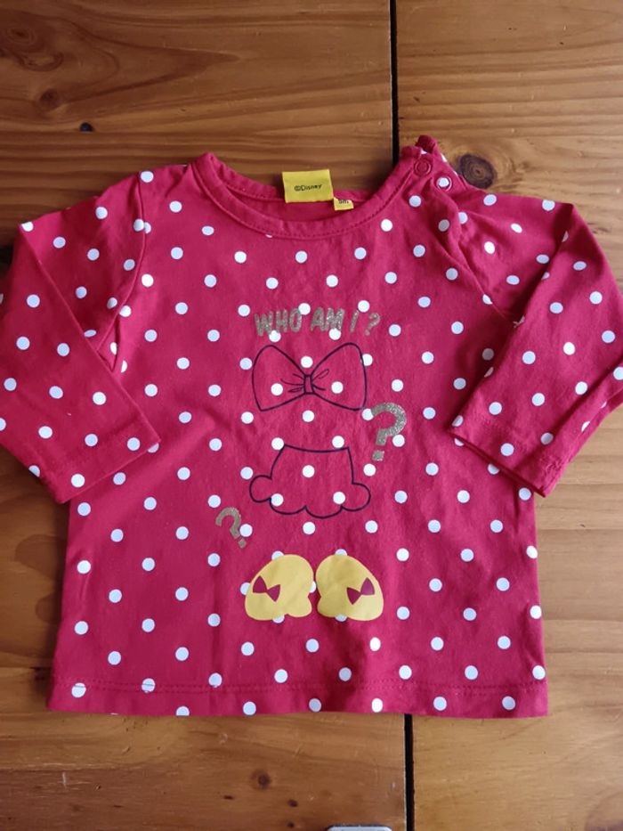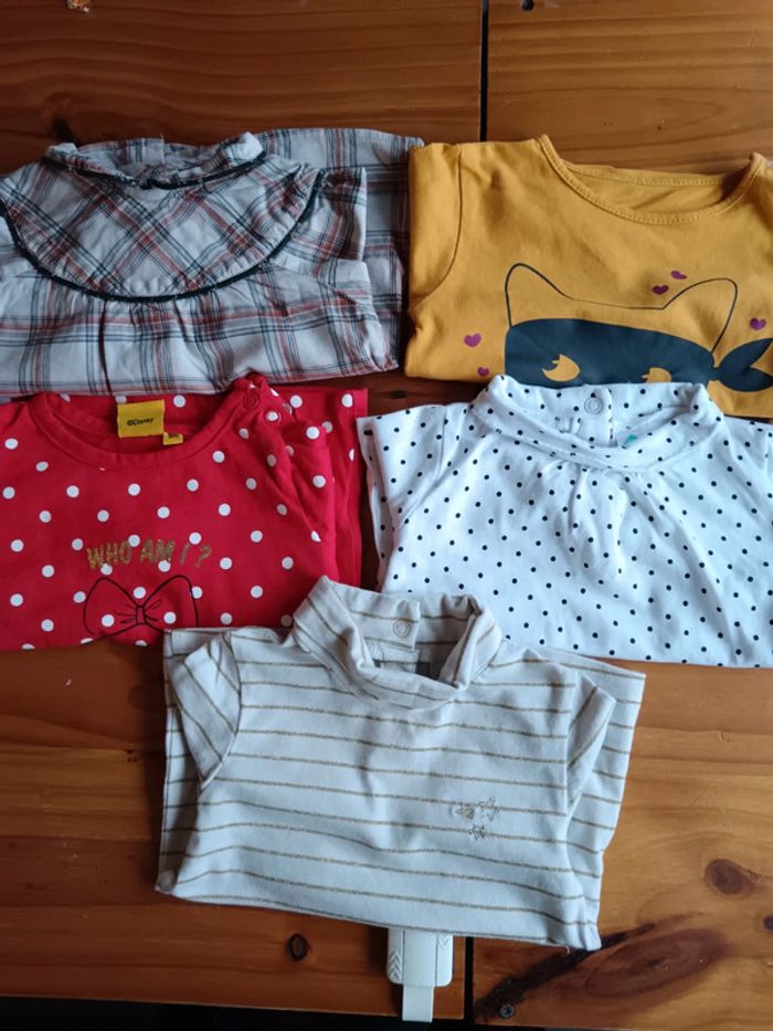 Lot 4 tee shirt 9 mois manches longues et un chemisier - chemisier sergent major - 1 tape a loeil - 1 tex 1 dysney 2 tex #romain17116fille9mois