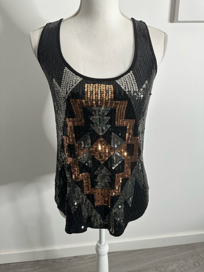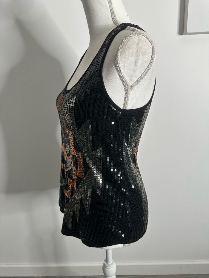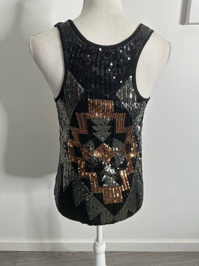 Débardeur sequins noir argenté et bronze Y2K Patrice Bréal T1 36/38 S/M - photo numéro 1