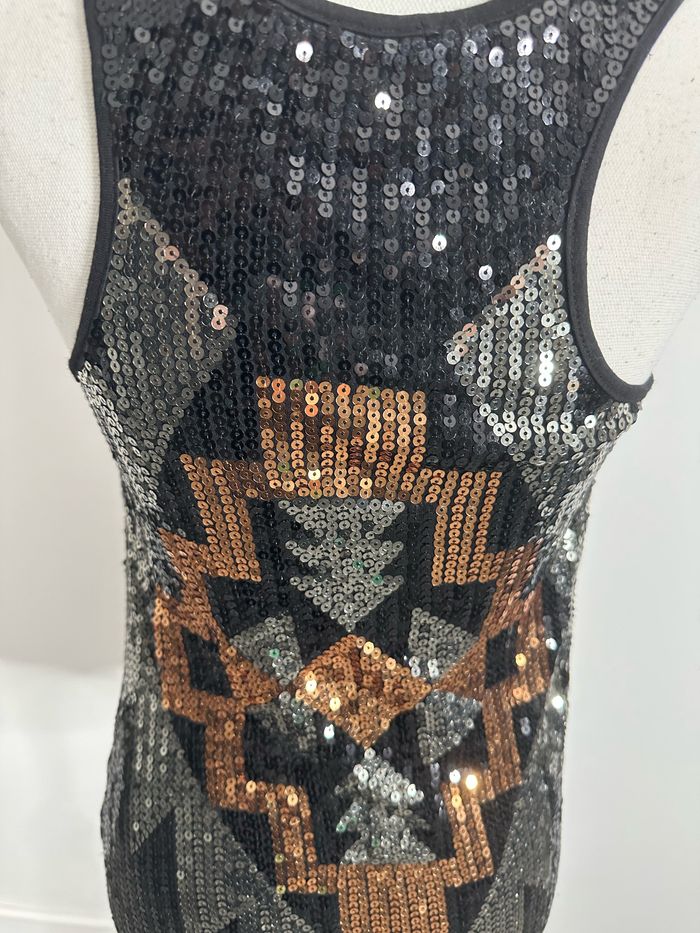 Débardeur sequins noir argenté et bronze Y2K Patrice Bréal T1 36/38 S/M