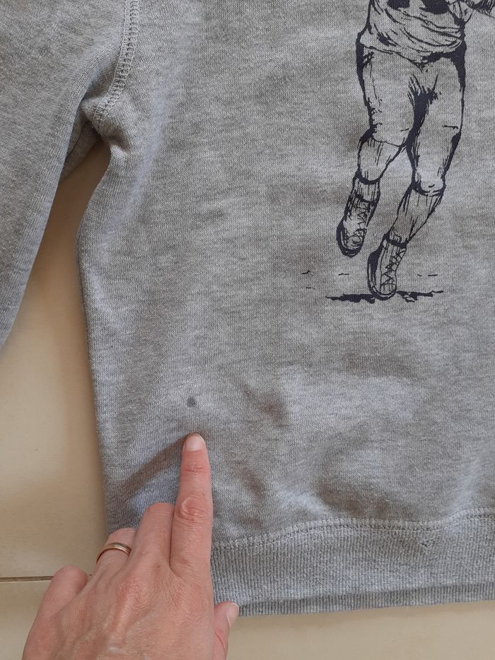 Sweat à capuche. Un petite tâche sur le devant du pull comme le montre la photo.