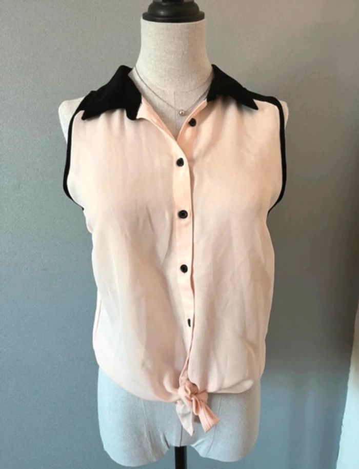 Je vend un chemisier - sans manches - couleur rose pâle et col noir - taille S - Jennyfer - très bon état - 100% Polyester #chemisier #femme #chemisierfemme #jennyfer #fluide #tendance 💙 N'hesitez pas a aller jeter un coup d'oeil à ces comptes : - marie.g2804 - amelie8299 Possibilités de faire un lot en mélangeant les articles des dressings 💙