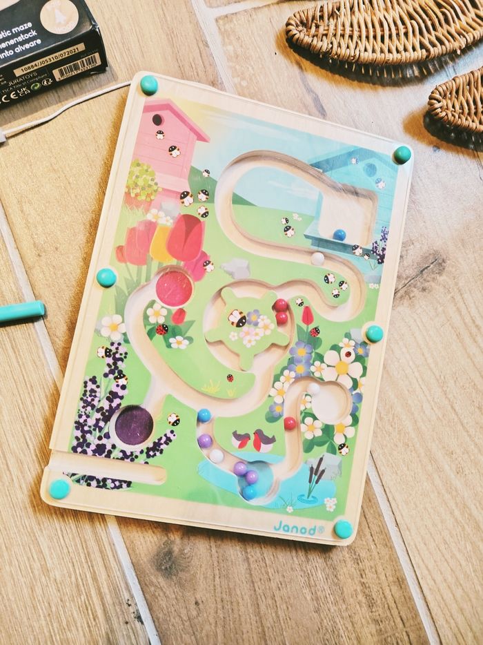 🐝Jeu de motricité fine- Planche labyrinthe à billes magnétique en bois La ruche marque Janod JB1409 - photo numéro 1