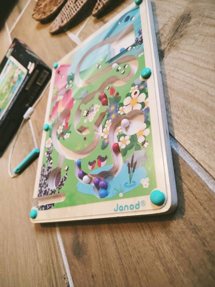 🐝Jeu de motricité fine- Planche labyrinthe à billes magnétique en bois La ruche marque Janod JB1409 - photo numéro 5