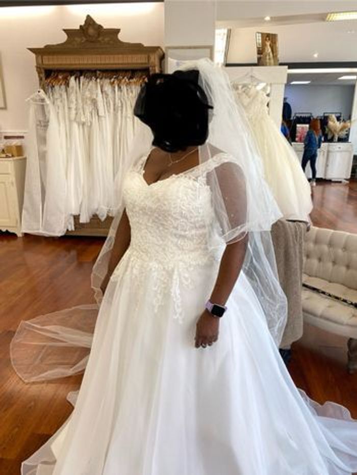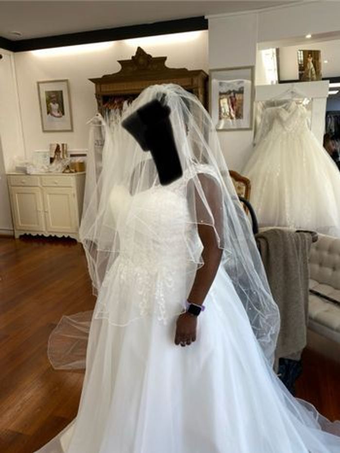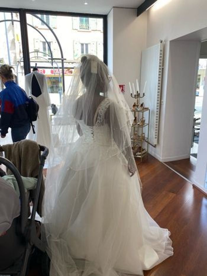 Je vends ma robe de mariée avec le voile. Porter qu’une fois .